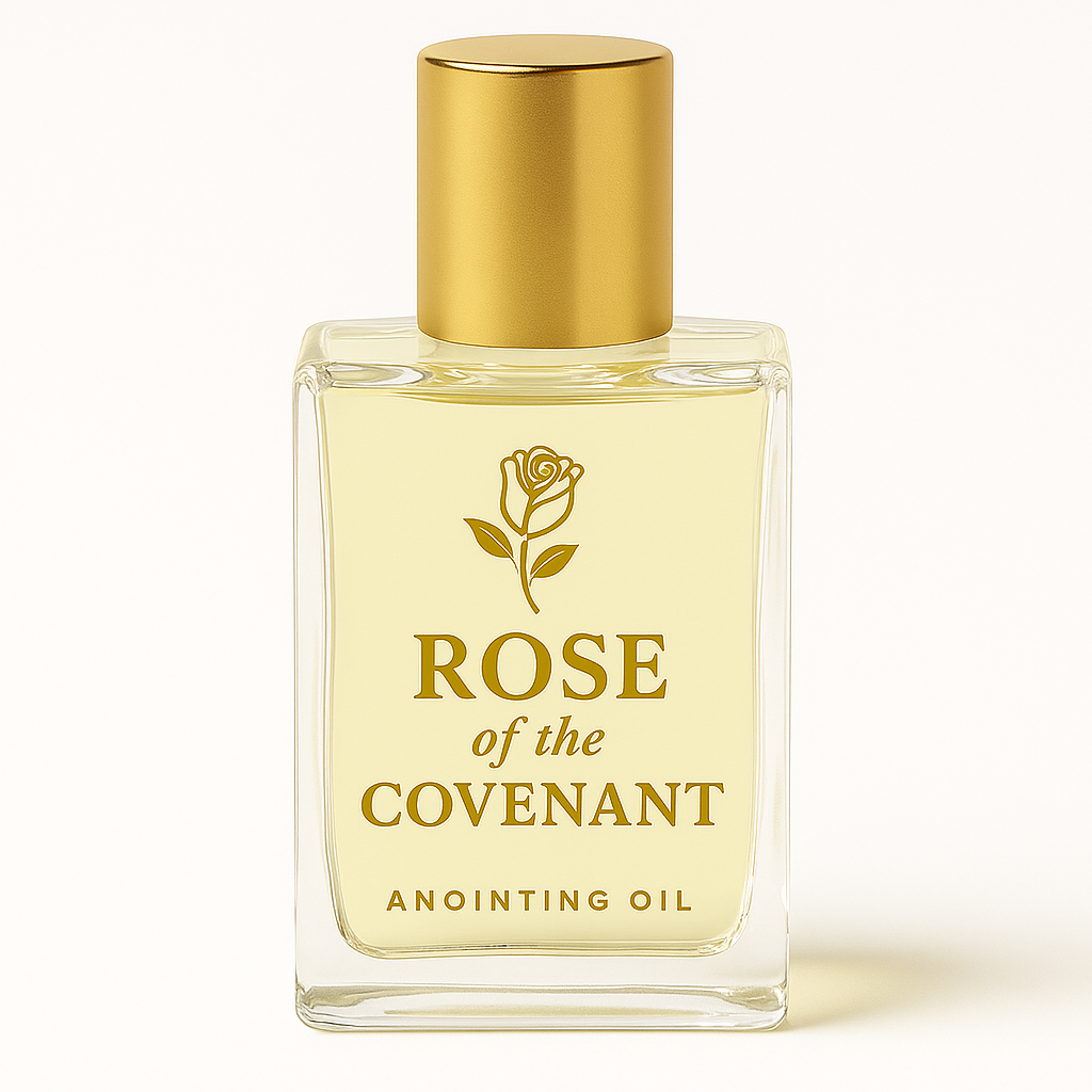 Rose of the Covenant Anointing Oil. A blend of Olive Oil, and Other Sweet Smelling Essential Oils with a Prophetic Statement.